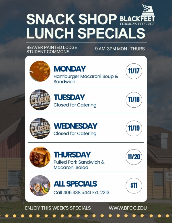The Snack Bar provides students, faculty, and staff with a convenient on-campus option for light meals, beverages, and grab-and-go snacks. Located in the Beaver Painted Lodge Student Commons, it offers a welcoming space to refuel and recharge throughout the day.